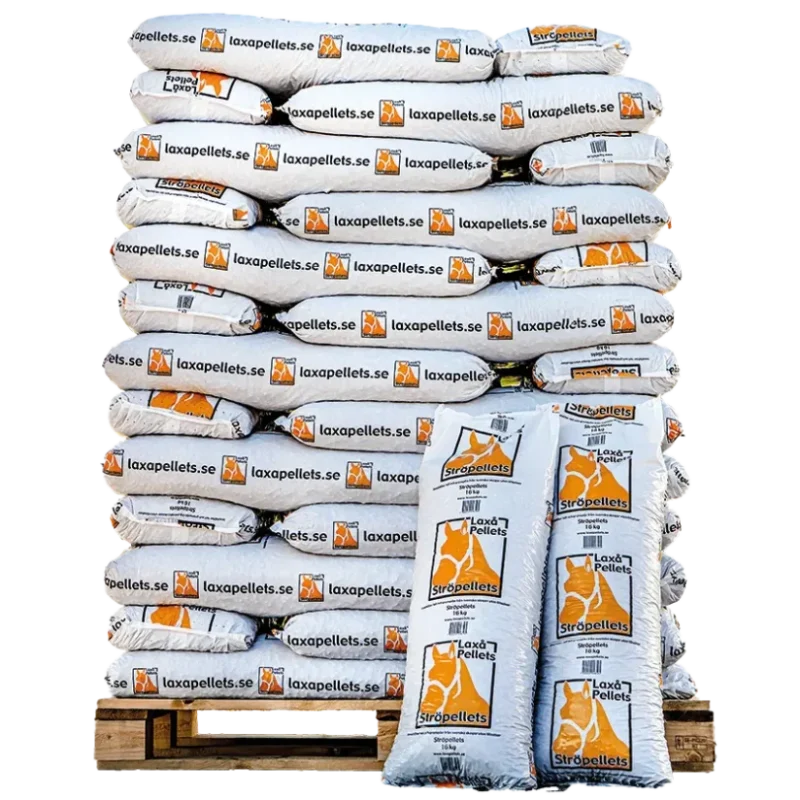 Ströpellets av gran och tall – en praktisk och hygienisk lösning för hästboxar, kattlådor och andra stallmiljöer. En pall innehåller 52 säckar à 16 kg, totalt 832 kg.